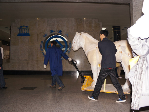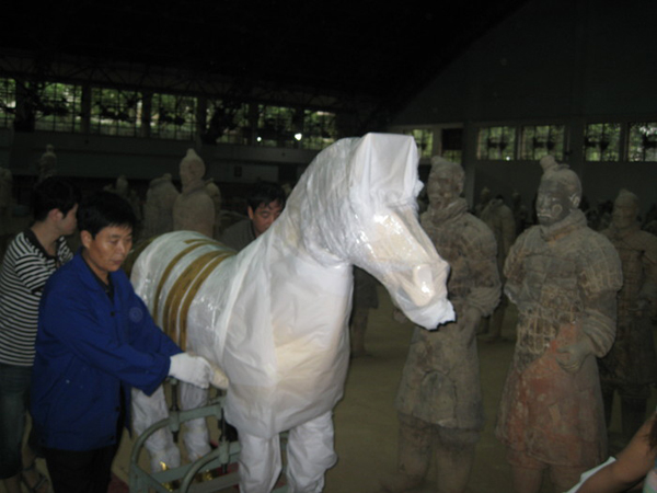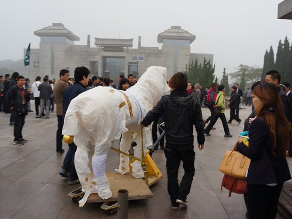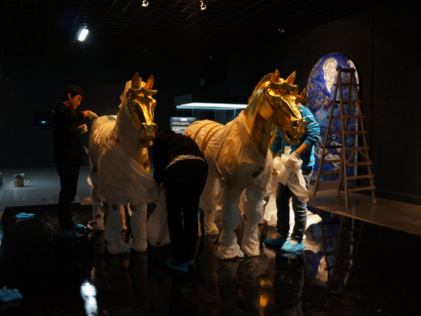 当年,一直伴随秦始皇南征北战、驰骋沙场的“追风、白兔、蹑(nie)景、奔电、飞翮(he)、铜爵、晨凫(fu)”七匹战马的故事,激发了江源无限的灵感,而成为其新艺术作品的创作源泉。