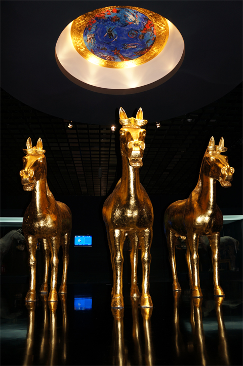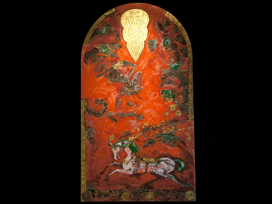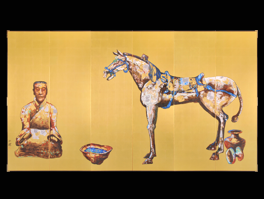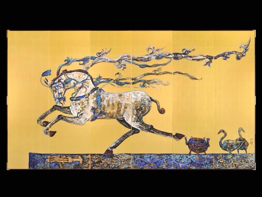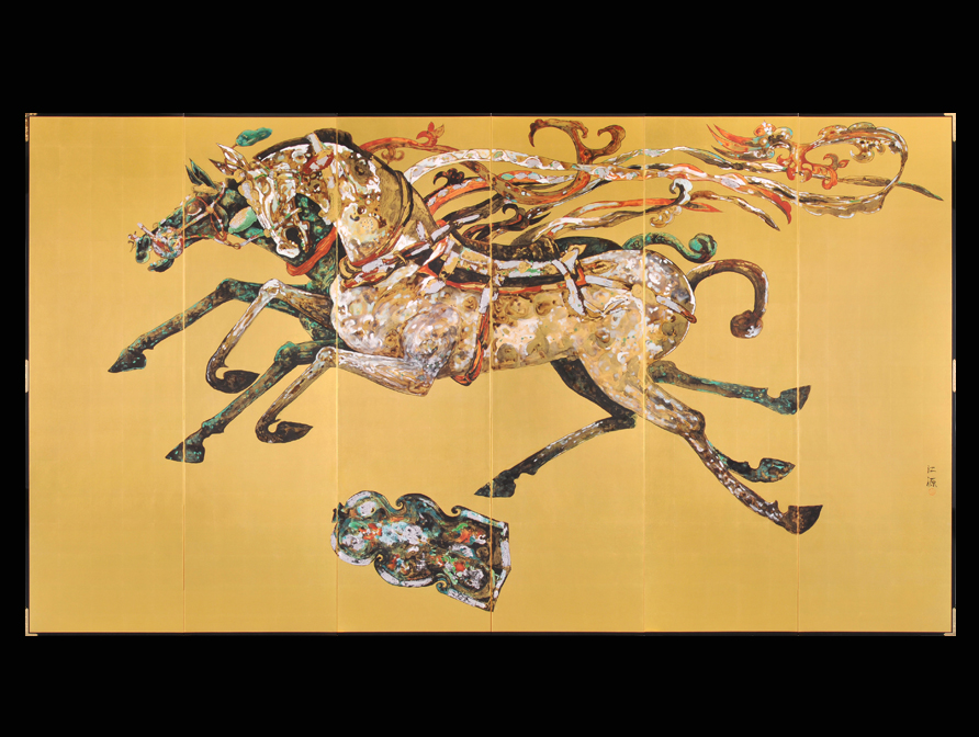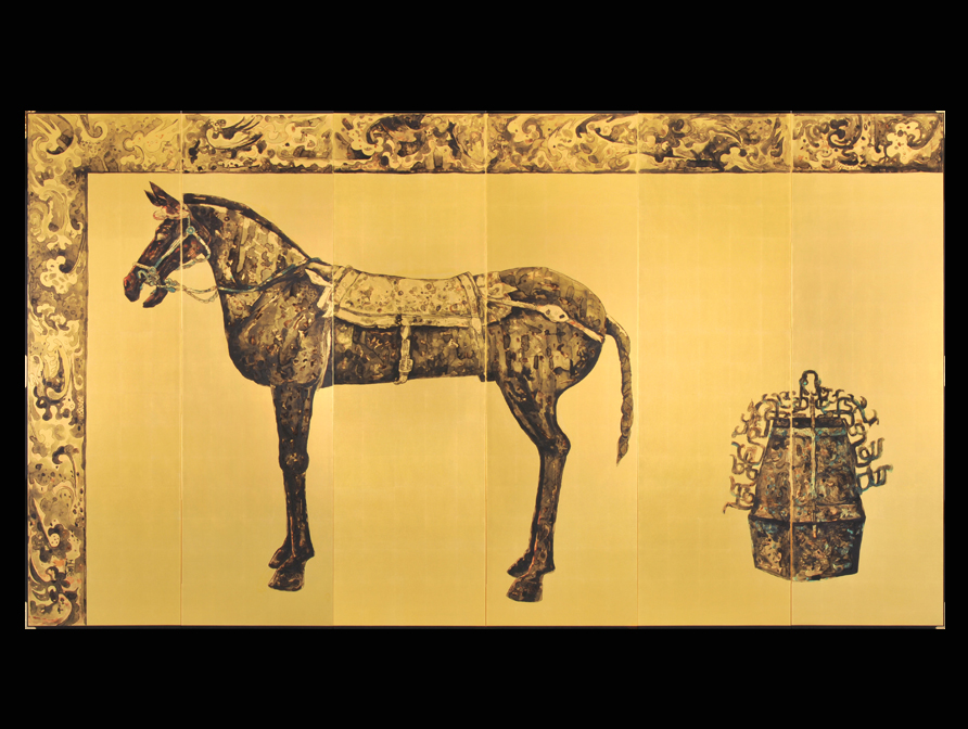 「秦盾」 376×241cm 六曲一双純金屏風 |